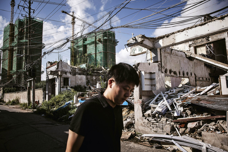 ( 中国房地产市场依旧火爆,居民在房地产市场加杠杆就是为了避免资产缩水。图为上海一处旧住宅区在拆除中 )