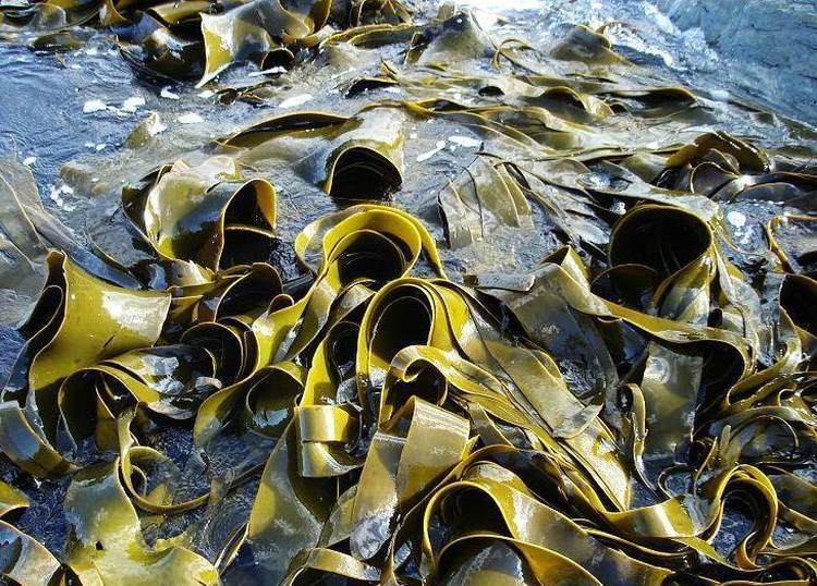 ▲海带(Laminaria japonica),生长于水温较低的海中
