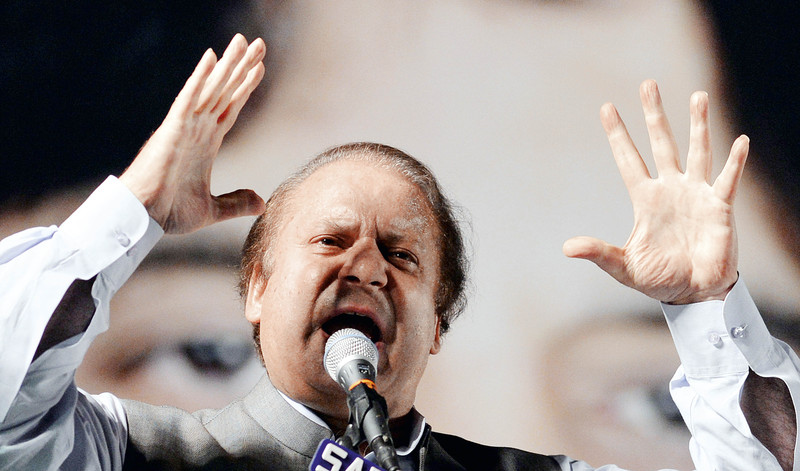 ( 5月7日,巴基斯坦前总理谢里夫在拉瓦尔品第举行的一场选举集会上对支持者发表演讲 )