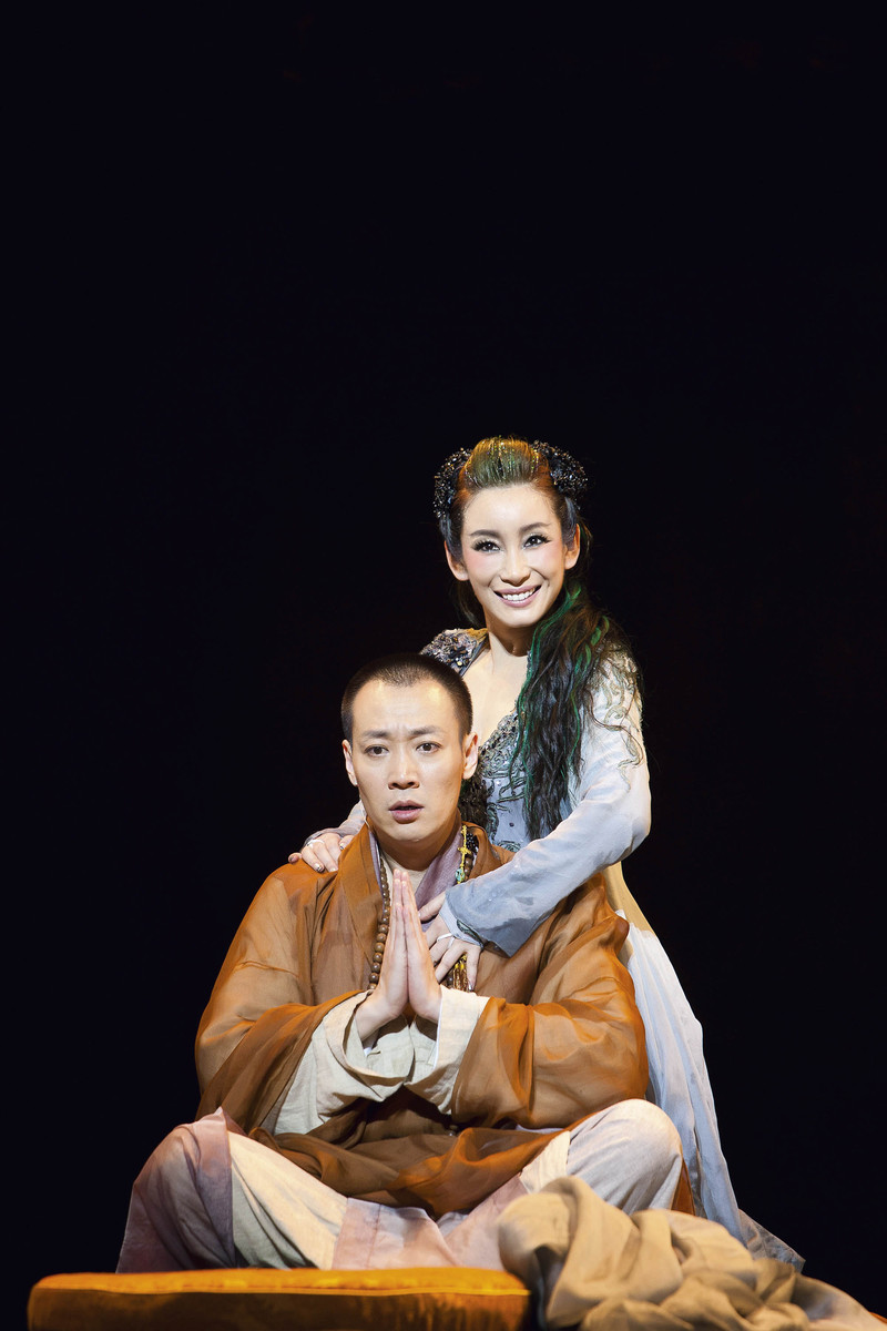 ( 《青蛇》剧照。剧中饰演法海的辛柏青和饰演小青的秦海璐 )