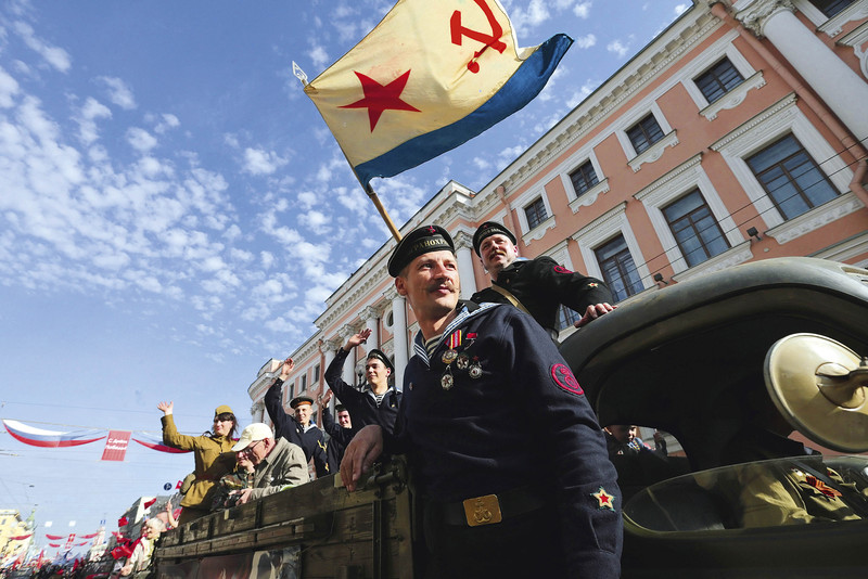 ( 5 月 9 日,在俄罗斯圣彼得堡,军事俱乐部的成员身着苏联军服游行,庆祝胜利日到来 )