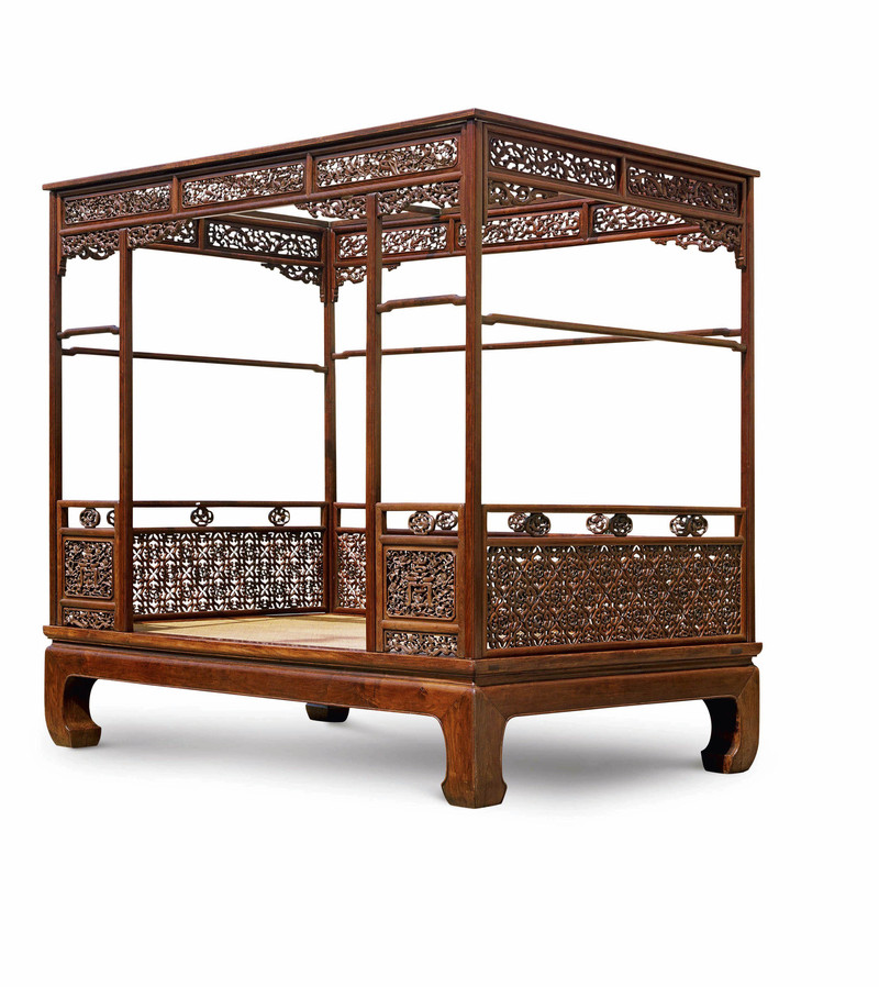 ( 明 黄花梨簇云纹马蹄腿六柱式架子床,2010年秋拍,4312万元成交 )