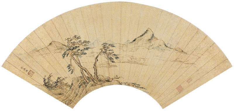 文震亨的曾祖父文征明是明中期著名的“吴门四家”之一,他创作的不少扇面,至今仍保存于北京故宫,如《兰石》、《红杏湖石图》、《红蓼蜻蜓图》等。文震亨所提到的“折叠扇”通称“折扇”。明代教育家刘元卿《贤奕传编》:“折叠扇一名‘撒扇’,盖收则折叠,用者撒开,以扇骨聚其头而散其尾,故又称‘聚头扇’。”对于这种折扇,一说宋人发明,一说日本传入,还有朝鲜传入说,只是至今未有定论。而折扇扇面则在明末开始流行,清代风行,成为时代潮流。