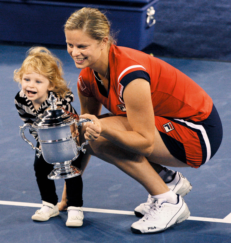 在9月12日举行的美网女单决赛中,比利时名将克里斯特尔斯成功卫冕,成为首位成功卫冕美网冠军的妈妈级选手。赛后,克里斯特尔斯与两岁半的女儿一起欢庆胜利。 )