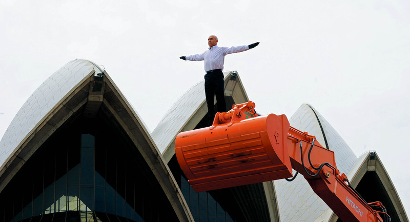 9月9日,在悉尼歌剧院前,法国舞蹈家菲利普·普里亚索与他的推土机“舞伴”合作表演,菲利普熟练的舞姿完美地诠释了力与美的结合。 )