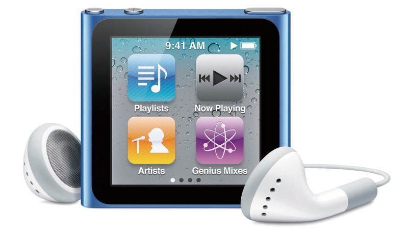 放弃iPod传统的转盘操控界面,苹果为第六代iPod nano引入了1.54英寸的触摸屏,尽管只有240×240的分辨率,可特别版的iOS系统,让iPod Nano可以获得近似iPhone的多点触摸效果。8GB和16GB两种容量规格,拥有7种外壳配色,内置锂电池可连续播放24小时,不包含耳机重量只有21.1克。■ )