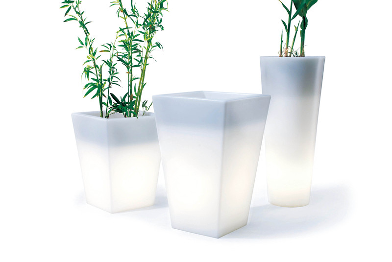 Offi公司的花盆灯把户外灯和盆栽结合在一起,白色浇铸塑料作为盆体,里面用荧光或节能灯管。花盆里透出的柔和灯光与盆中的绿植互相映衬,无论放在室内还是户外都是很好的装饰品。■ )
