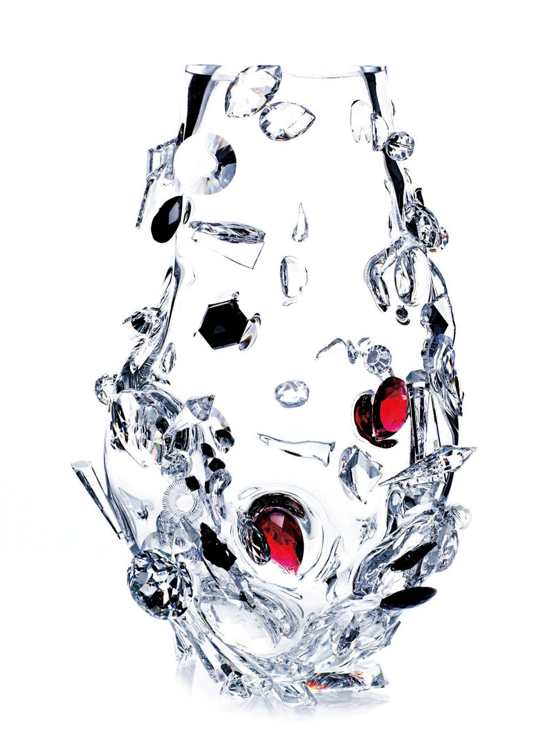 瑞典Front小组把施华洛世奇水晶作为设计实验的材料,制造出这样“随意的花瓶”。精确切割的红色、黑色和透明水晶颗粒与流动的热水晶液体结合在一起,最终获得了这样不规则的效果。■ )