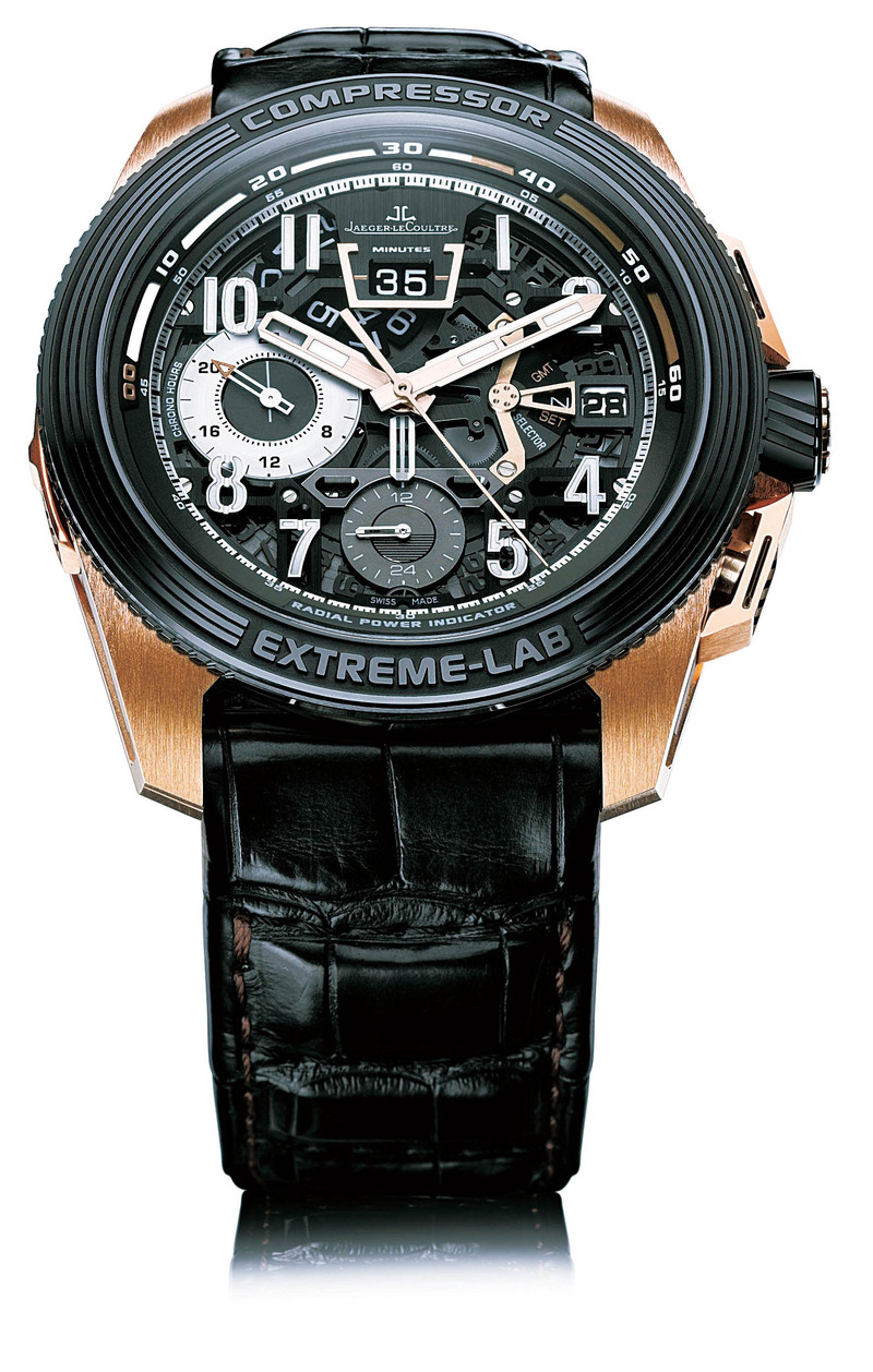 积家新推出的Master Compressor Extreme LAB 2腕表是适合极限探险家的时计,机械计时秒表机芯置于TiVan 15钛合金材质表壳内,功能选择按钮内嵌在表冠上,另外还有指示瞬跳分钟的专利数字计时盘、手动停秒功能、环形动力储存显示等创新功能。为了尽量让机芯不受外界磁场的影响,积家的技师还为这一腕表开发出不带磁性的硅制擒纵机构。■ )