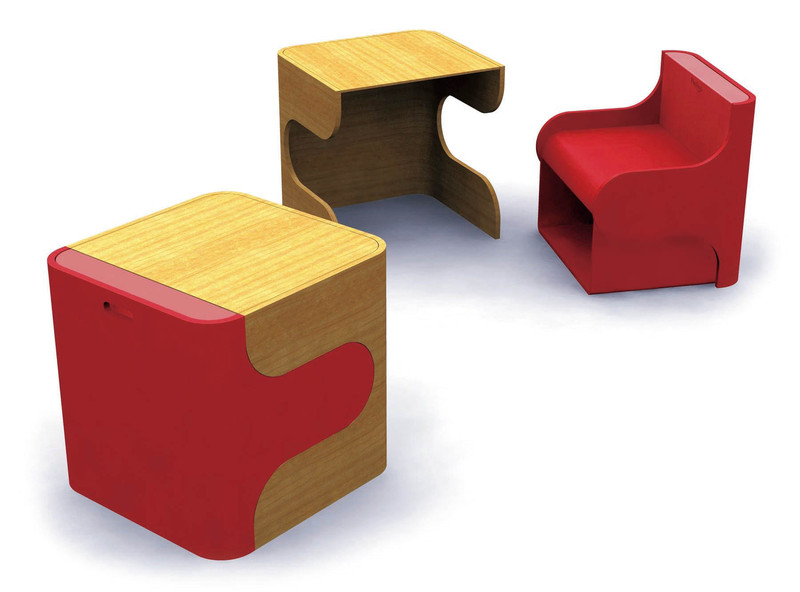 有趣的克利克(Klick)儿童桌椅组合,拼在一起是整体的方块,分解开来就变成一张桌子和一把椅子,提供足够的使用和储存空间。装有软垫的红色座椅是最佳的12英寸高度,适合3到7岁的小孩。■ )