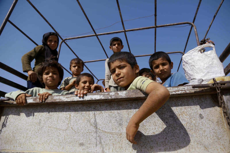 据《每日邮报》报道,最近盘踞在叙利亚的极端组织“伊斯兰国”在打击“‘伊斯兰国’国际联盟”的空袭下元气大伤,不得已从叙利亚阿勒颇省北部重镇曼比季(Manbij)溃逃。图为8月14日,“伊斯兰国”撤出后当地儿童乘坐卡车回家。曼比季是“伊斯兰国”调动兵力、运送武器及给养进出叙利亚的重要据点,今年5月底由库尔德武装主导的“叙利亚民主军”在“国际联盟”的支持下对曼比季发起进攻。