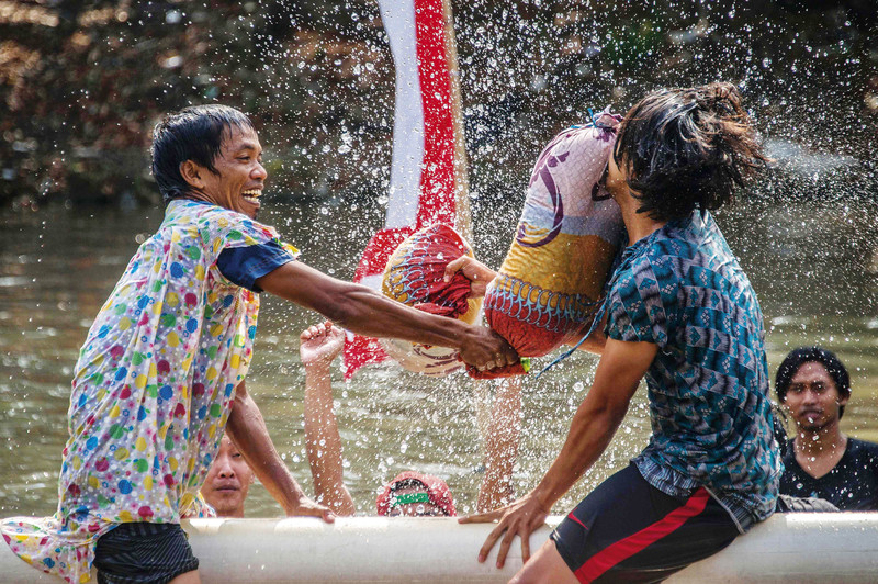 印度尼西亚于1945年正式宣布独立。2016年8月17日是印尼第71个独立纪念日。当天在雅加达举行了阅兵,在印尼全国各地也开展了“爬杆”、枕头大战、水上升旗、百人冲浪等各种新奇的纪念活动。图为在印尼泗水举行的枕头大战活动。