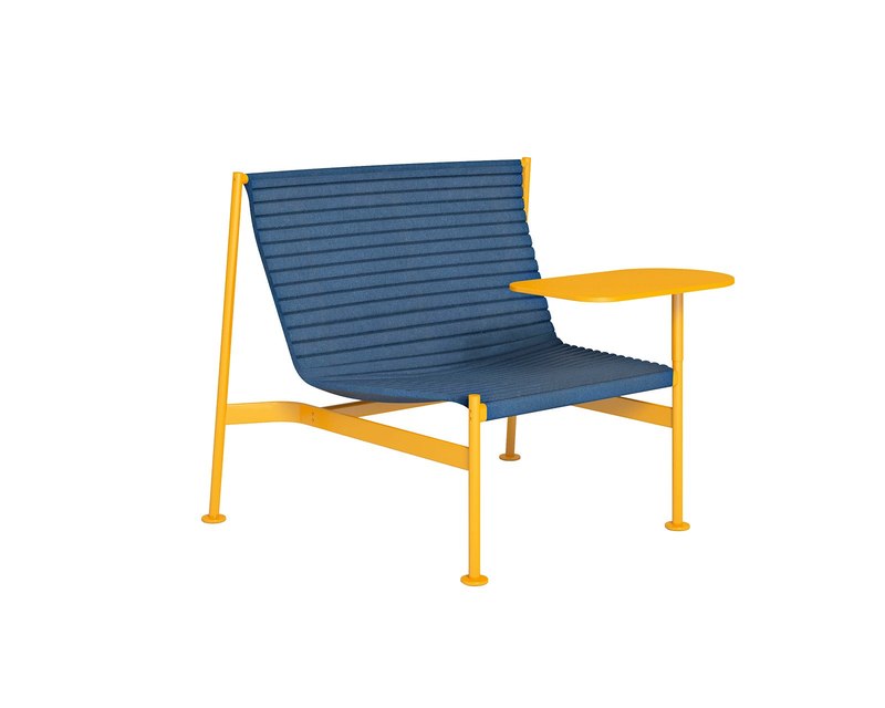 Cappellini的Telo座椅具有野外露营椅的原型,不锈钢管的支撑结构按照模块化的概念组合,可以加入桌面或托盘。