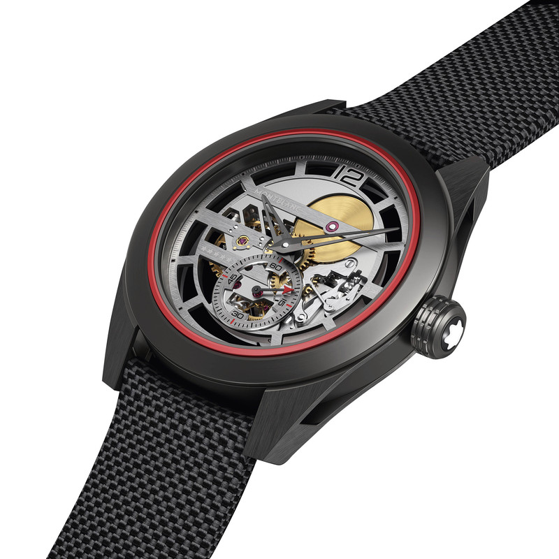 万宝龙专为羽毛球世界冠军林丹量身打造的Pythagore超轻概念腕表,采用了ITR2(r)Kevlar(r)/碳材质和黑色DLC涂层钛金属使腕表重量仅为14.88克。手动上链MB M62.48机芯,可提供50小时动力储存。