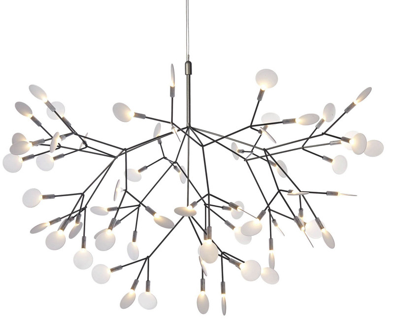 Moooi品牌的Heracleum装饰性吊灯,设计上受到“独活”(Heracleum)草本植物的启发,带白色LED灯头可以围绕着黑色金属茎杆自由地旋转。