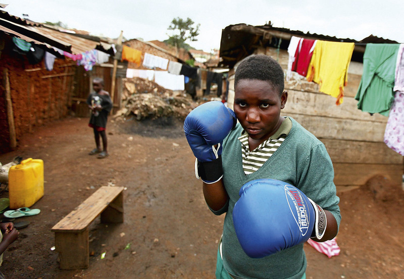 10月15日,首都坎帕拉的加丹加贫民窟内,女拳击手娜塔莉在备战韩国济州世界女子拳击锦标赛。她是乌干达为数不多的女子拳击手之一。
