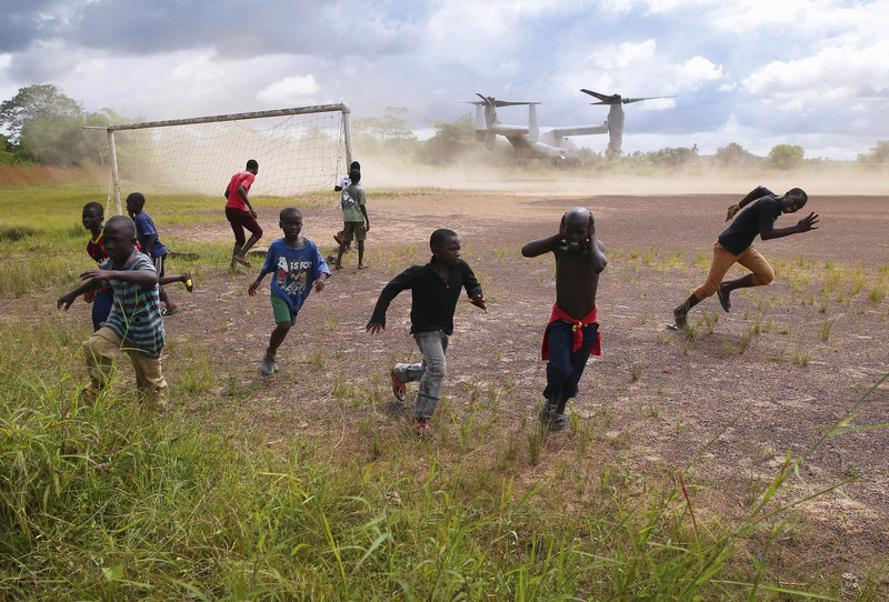10月15日,一架美军“鱼鹰”飞机飞离土布曼堡市一个在建的埃博拉治疗中心。