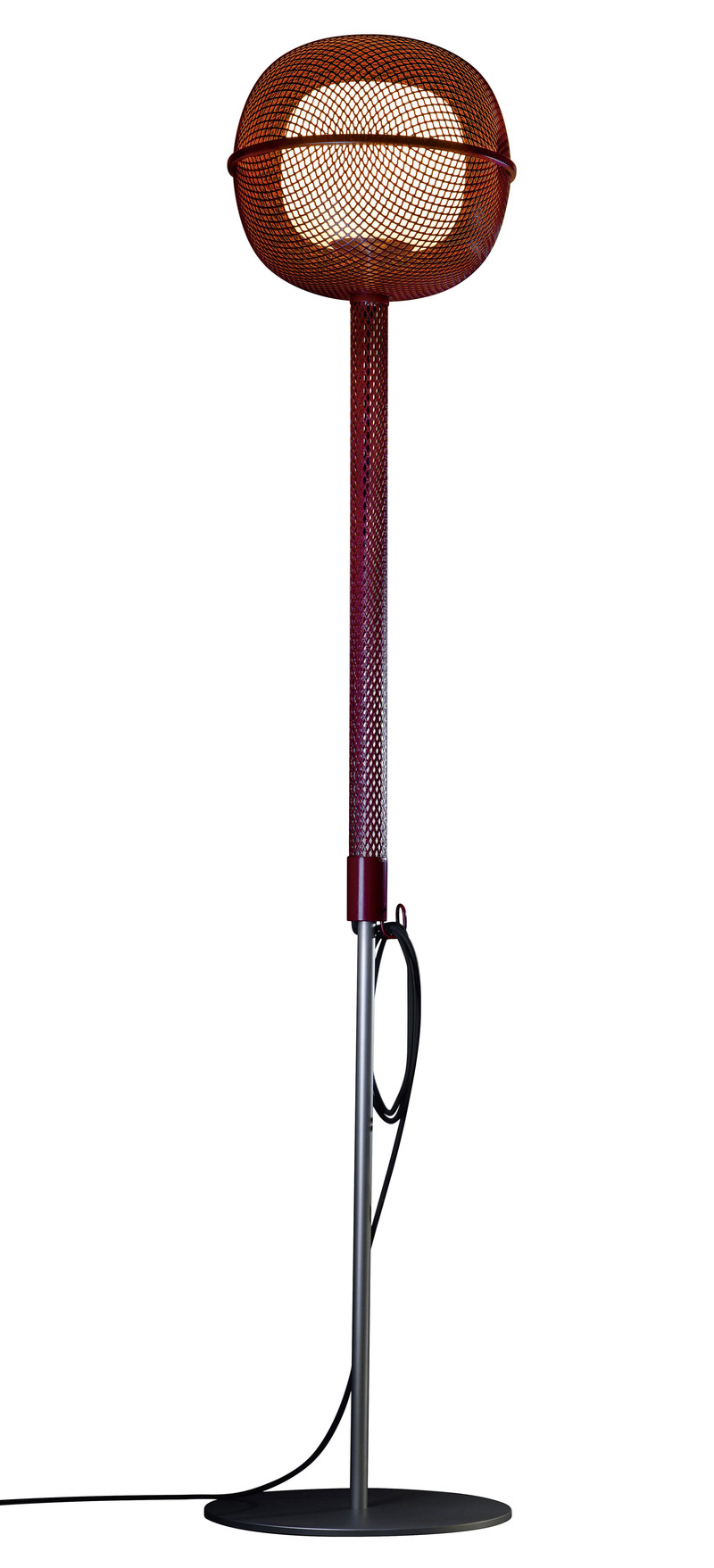 Artuce品牌的Noctiluque落地灯基于双重保护的原则,防护格栅包围着白色塑料灯罩,但不会接触到内部结构。这个金属外壳混合了功能和技术,让光源似乎漂浮其中。