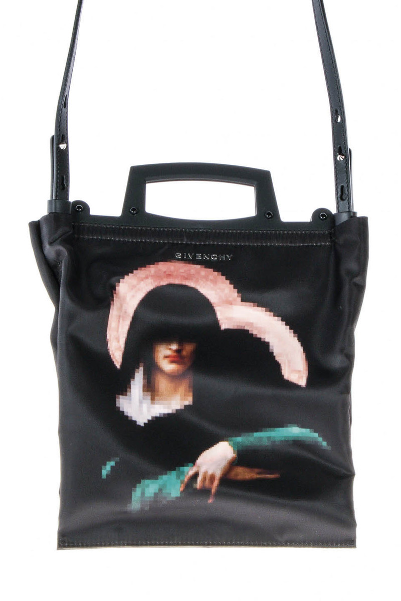 纪梵希2014秋冬系列的Rave肩包,彩色圣母图案印制在黑色尼龙上,配黑色橡胶手柄及印花黑色毛毡衬里。肩包有意模糊男女使用的界限,A4大小的尺寸满足日常使用需求。