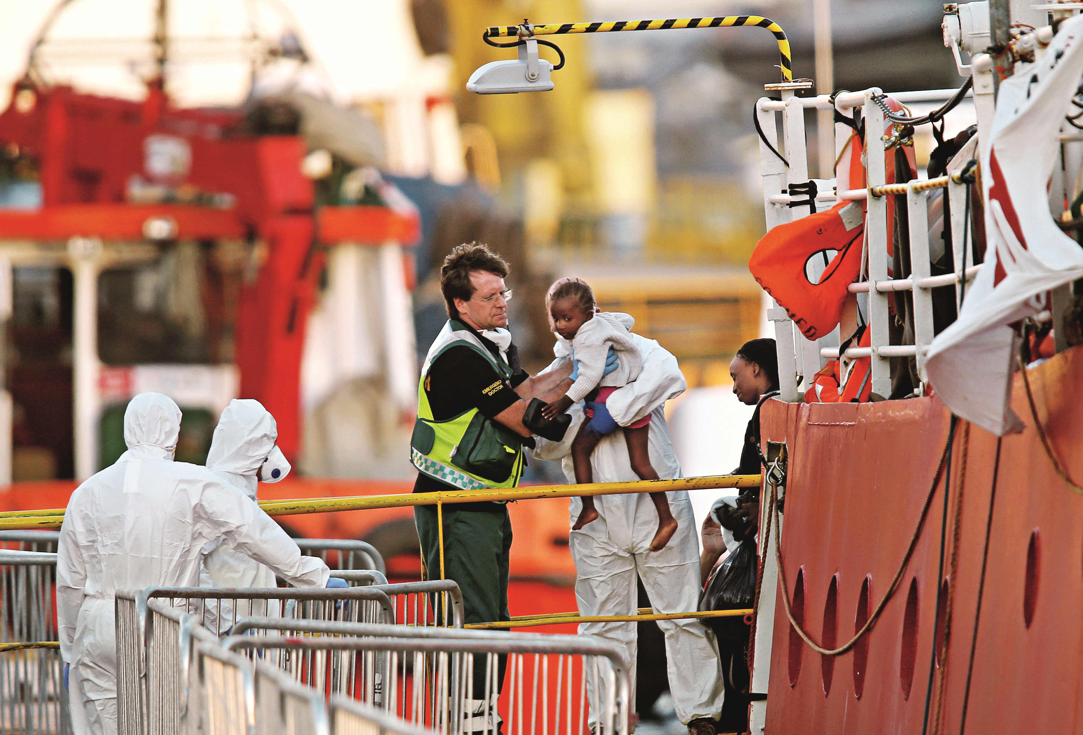 来自中央电视台的新闻画面显示,“生命线”号 缓缓靠岸,马耳他当地的工作人员穿着隔离服,船靠岸时,他们先将船上5名儿童和17名妇女接下船。入境后,除了船上一名肺部受伤的成年人和3名儿童被送往当地最大的公立医院进行检查和救治,其他难民全部由警车送往马萨难民接待中心,同时展开的工作,还有对这些难民的身份识别、避难申请确认、移送他国等一系列流程。