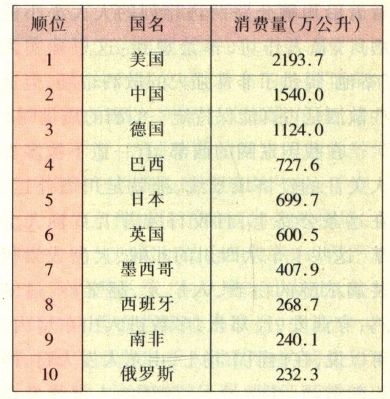 1995年啤酒消费量前10位国家