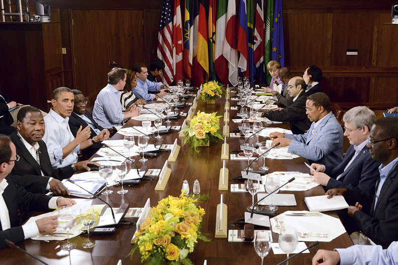 5月19日,奥巴马总统在戴维营与参加G8峰会的八国集团领导人以及4位非洲领导人共进工作午餐 )