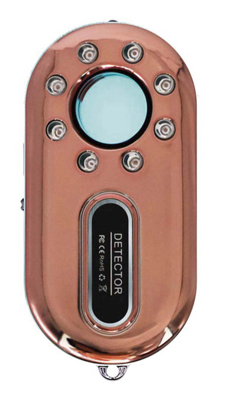红外探测仪仅有钥匙扣大小,其LED警报灯圈通过红蓝色灯光交替闪烁,发射出检测光线,遇到针孔摄像头时会被反射回来,从而通过观察镜片确定针孔摄像机的位置。