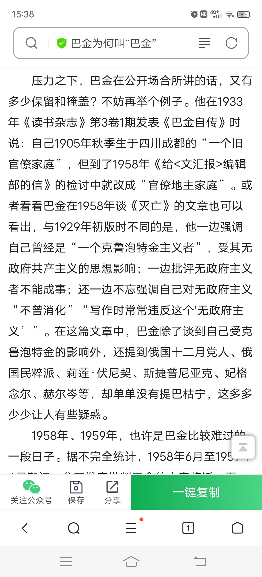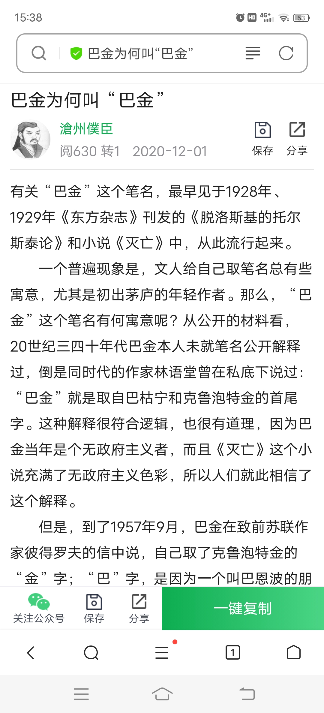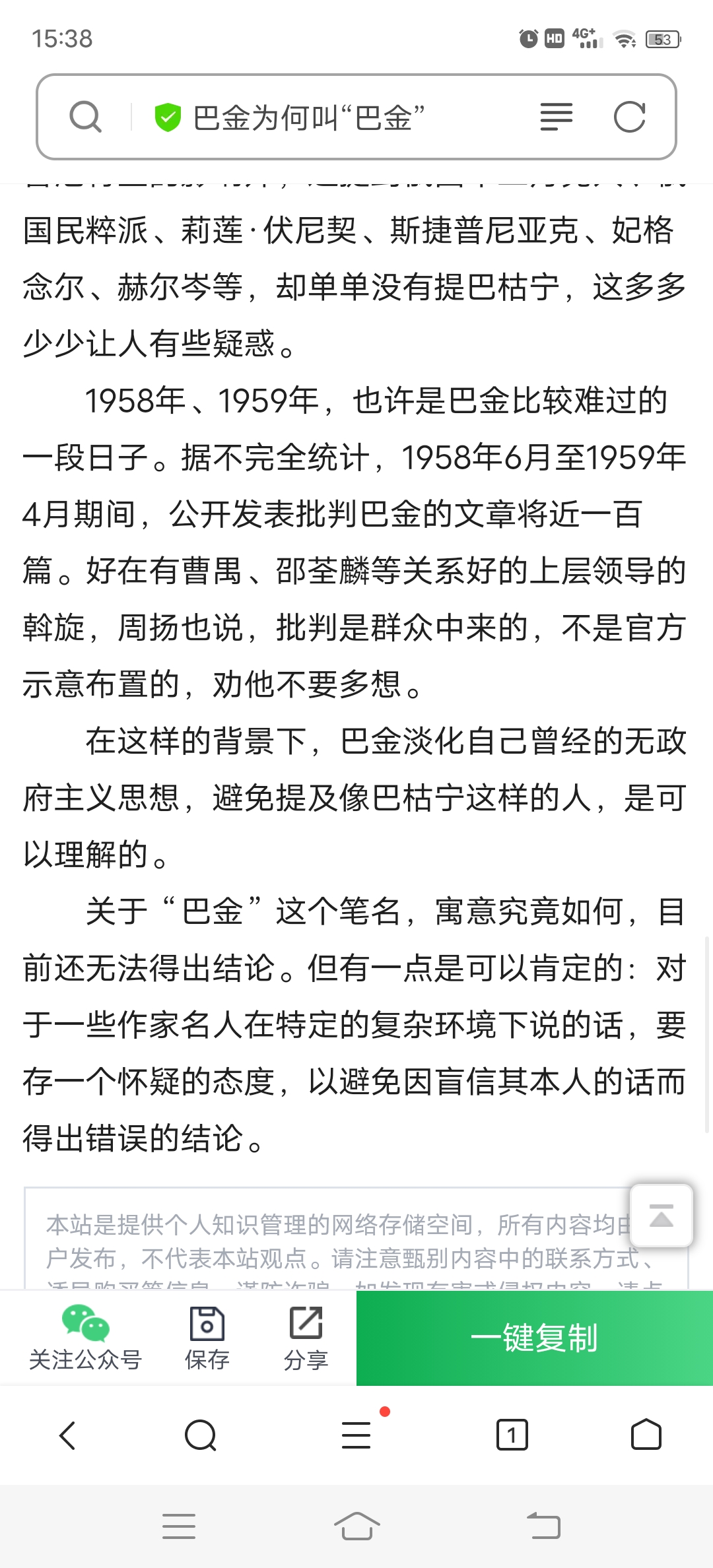 撰文中有一个小问题,巴金的笔名中的巴并不取自于巴枯宁,望改正。